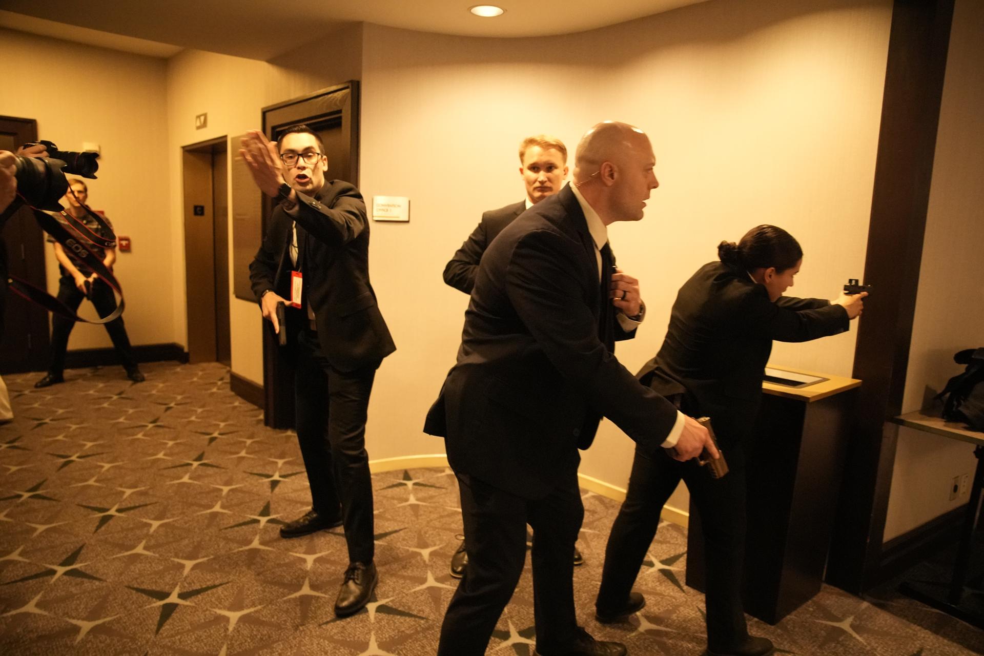 Os tiros, aparentemente entre três e quatro, ocorreram do lado de fora do salão principal do hotel Washington Hilton, segundo a EFE. Logo após os disparos, todos os ocupantes da mesa principal foram levados para um local seguro. Na sequência, agentes do Serviço Secreto entraram no salão portando rifles e orientaram os presentes a se abrigarem.