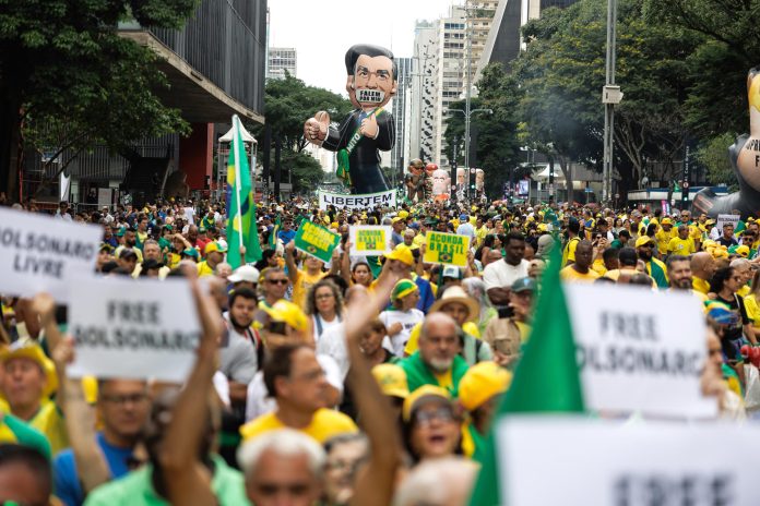 A multidão vestiu as cores verde e amarelo da bandeira e pediu liberdade para Bolsonaro. Flávio Bolsonaro chegou à avenida Paulista por volta das 15h. Ele estava acompanhado do governador de Zema, de Nikolas e do pastor Silas Malafaia.